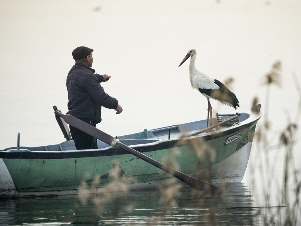 Geçen yıl 4 yavruları olan Yaren leylek ile eşi Nazlı’nın buluşmasını, balıkçı Adem Yılmaz da göldeki kayığından izlerken, Tüydeş, sosyal medya paylaşımında şu ifadelere yer verdi: