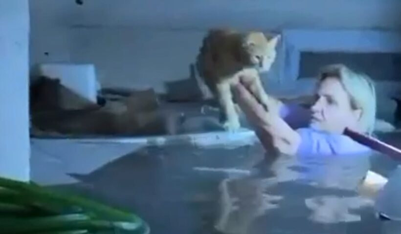 Antalya’da hayatı felç eden yağmurda bir apartmanın bodrum katında mahsur kalan kedi AFAD gönüllüsü Gülcan Demirbilek tarafından kurtarıldı. O anları Demirbilek’in kızı kayda alınırken görüntü…