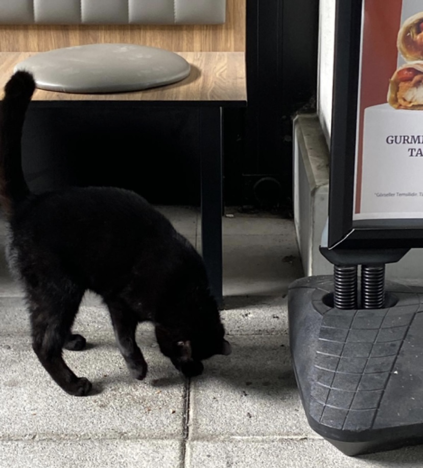 Kafeler sokağına indiğimde torun siyah kediyi gördüm. Bir kafenin önündeydi. Ona meme verenle oyun oyma çabasındaydı. Geç delikanlı onunla ilgilenmeyince patisiyle bacaklarına sertçe dokundu. Gösterdiği ilgiye karşılık almak istiyordu sanki Görünmezlikten gelmeye tepki veriyordu belki. Kivi de böyle özellikler yok. O daha