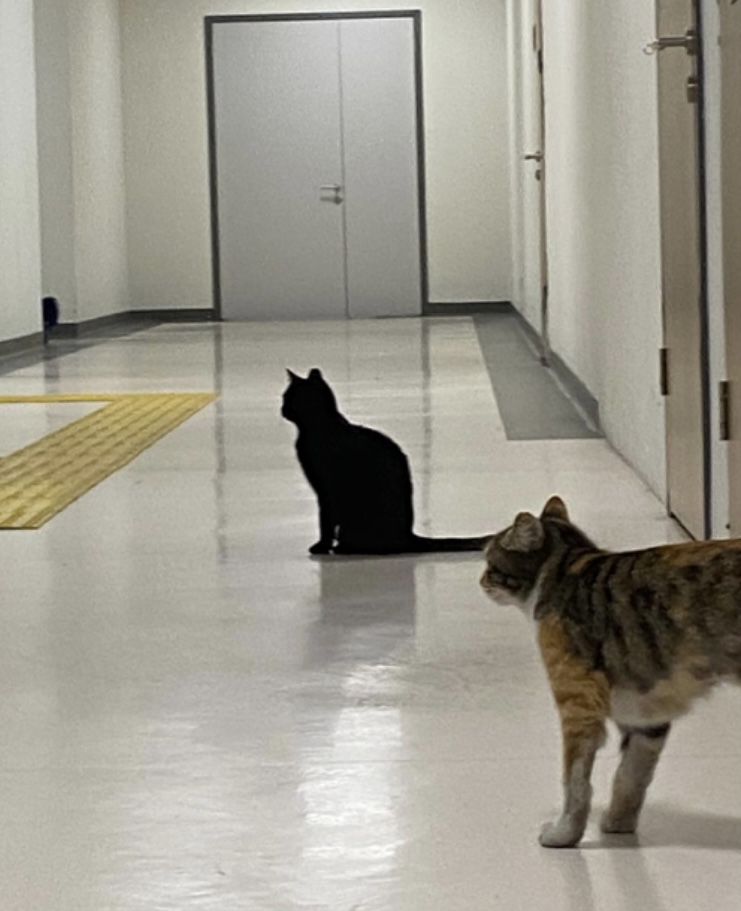 Sabah geldiğimde Kezban, kapının girişinde sırtı dönük biçimde; Kivi ise can dostunun kapısının önünde her zamanki gibi duruyordu. Önce Kezban’ın sonra Kivi’nin fotoğrafını çektim. Bu sırada aç olduklarını belli etmek için ikisi de kısık sesle bir kaç defa miyavladı.
