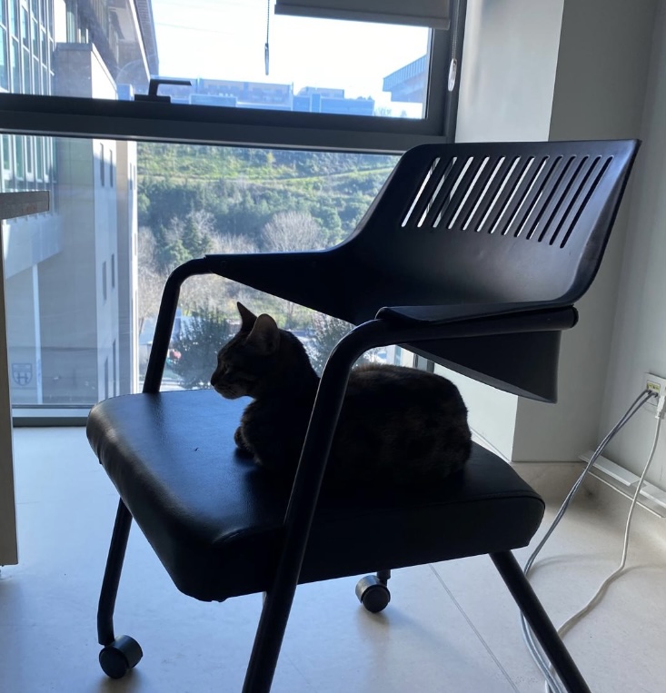 Daha çok mevsimler görecek burada. İçgüdüsel de olsa kendini koruma yolunu bulmuş. Fakat tercihi nedense hoca koltuğu olmuş. Belki de öğrenci koltukları daha görünür olduğundan. Çünkü hoca koltuğuna uzanınca önünde masa olduğundan fark edilmesi mümkün değil. Bir de yüzü kapının girişine dönük, gözleri de açık. Bir gelen olur mu? Tehdit var mı diye bakıyor. Ancak oldukça hareketsiz. Enerjisini az kullanıyor. Elimdeki suyu görünce birini açıp onun için yere koydum ama içmedi. Sonra başını okşadım. Ona dokunmama izin verdi. Onu rahatsız etmeden bilgisayarı açtım yapmamam gereken işlemleri tamamladım.