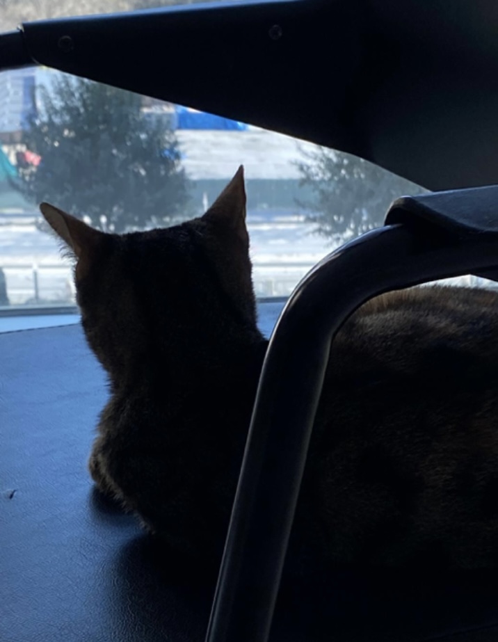 Soğuktan nedeniyle dışarıdan kaçmış, en uygun yer olarak da giriş kapısının karşısındaki boş sınıfı seçmişti. Zeki bir kedi. Ne başkalarına rahatsızlık vermek istemiş ne de başkalarının onu rahatsız etmesine. Rahat biçimde uzanmış, patileri gövdesinin altında. Belki üşümüş vücut ısısıyla onları ısıtmaya çalışıyor. Derslikte hava sıcaklı 20 derece. Onun için de ideal bir sıcaklık. 5-6 aylık olsa gerek. Bu ilk kışı olacak. Daha önce deneyimlemediği bir durumu yaşayacak. Küçük olmanın dezavantajı yaşam deneyiminin de sınırlı olmasıdır.